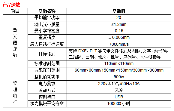 適用于大型工件或不規(guī)則工件打標(biāo),電光轉(zhuǎn)換效率高,采用風(fēng)冷冷卻方式,耗電量小,整機(jī)體積小,輸出光速質(zhì)量好,可靠性高,使用壽命可達(dá)10萬個(gè)小時(shí)。可雕刻金屬材料和部分非金屬材料,主要應(yīng)用于對深度、光滑度、精細(xì)度要求 較高的領(lǐng)域